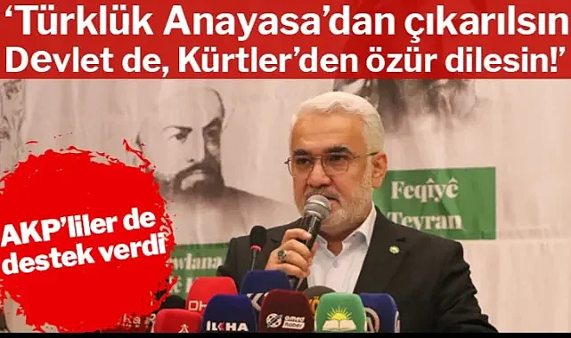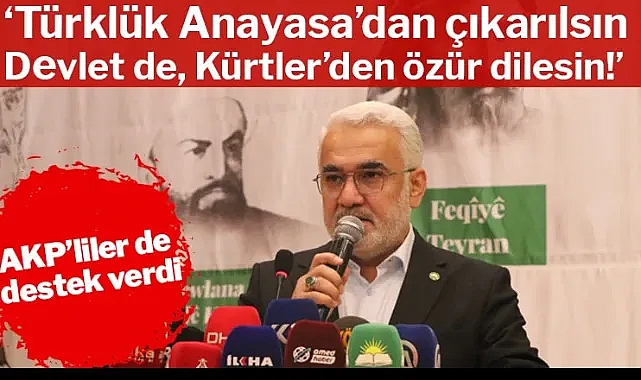 Cumhur İttifakı ortağı  HÜDA PAR’ın , Diyarbakır’da düzenlediği ve AKP’lilerin de katıldığı “Kürt Meselesine İnsani Çözüm’’ toplantısındaki talepler ortalığı karıştırdı. Türklük tanımının anayasadan çıkarılması, Kürtçe’nin resmi dil olması, tarih kitaplarının yeniden yazılması istendi. Kürt meselesinin kaynağının “Kemalist zihniyet” olduğu öne sürülerek mevcut Anayasa da, “Kemalist zihniyetin ürünü” diye nitelendi. Okullarda Kürtçe eğitim de istendi.